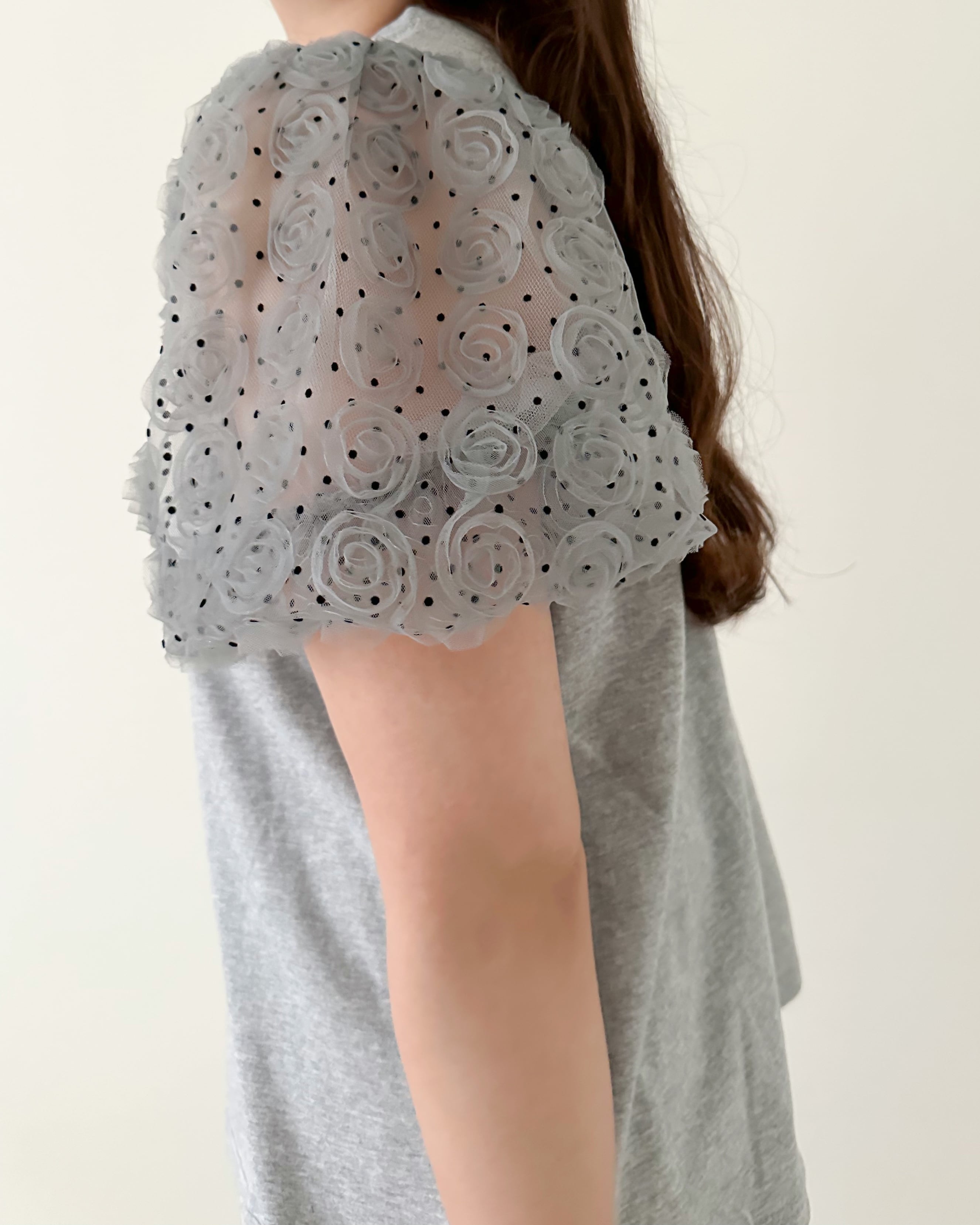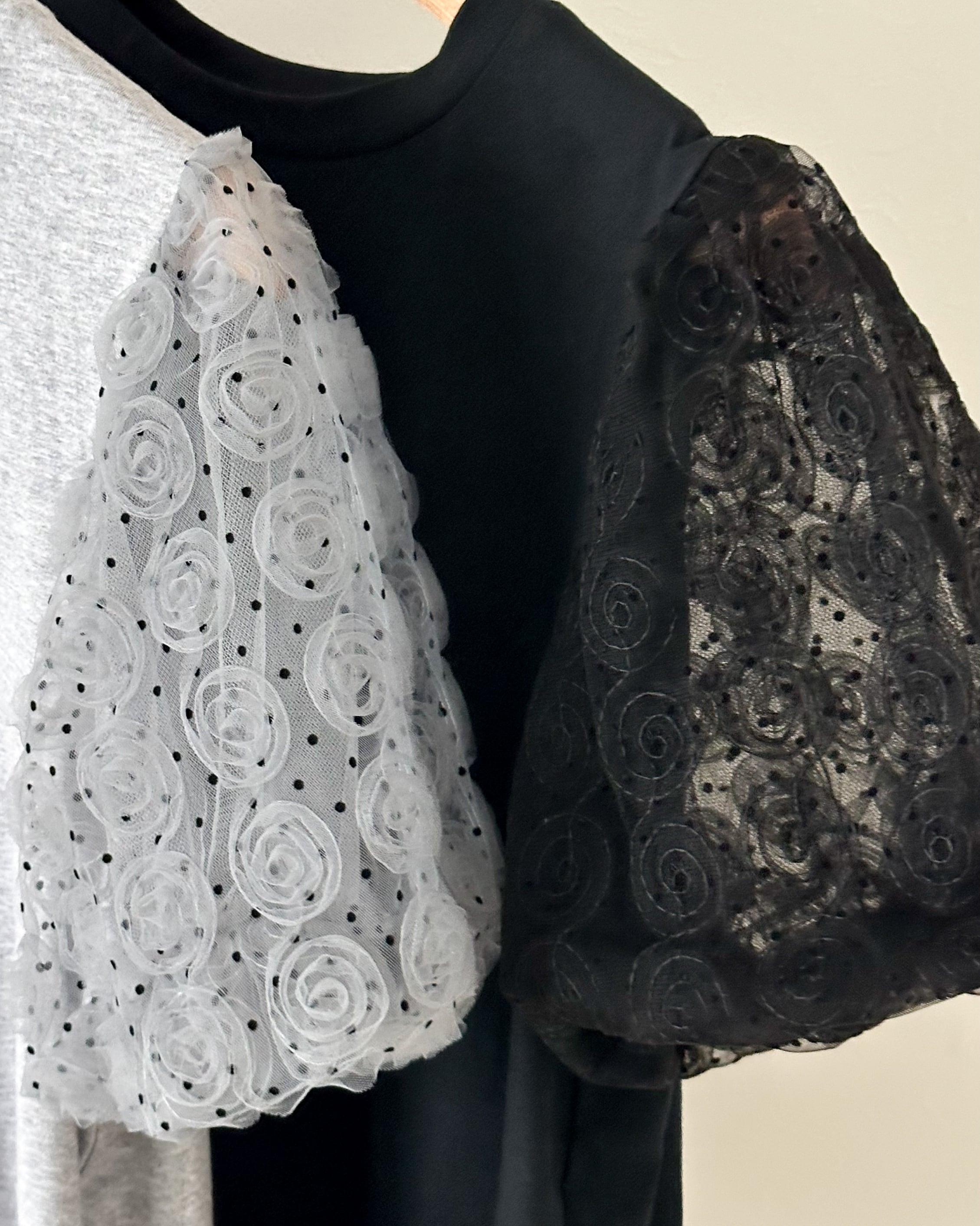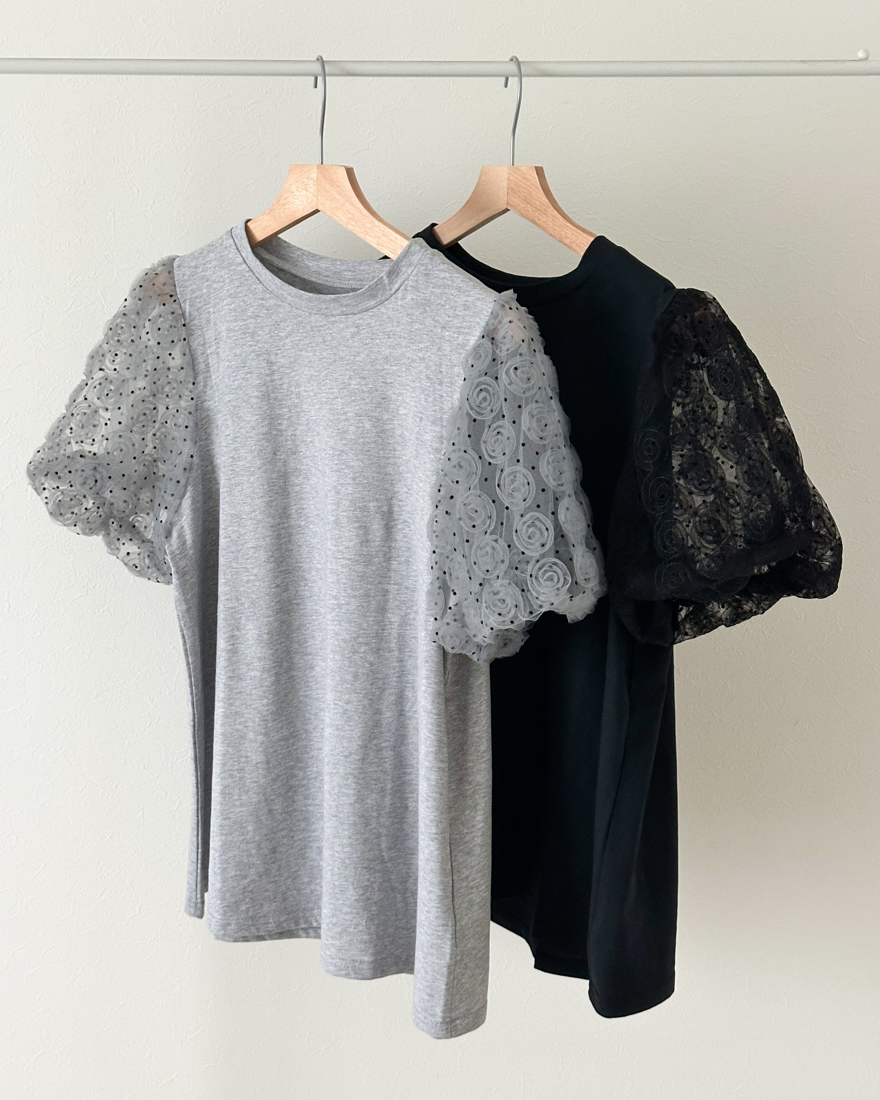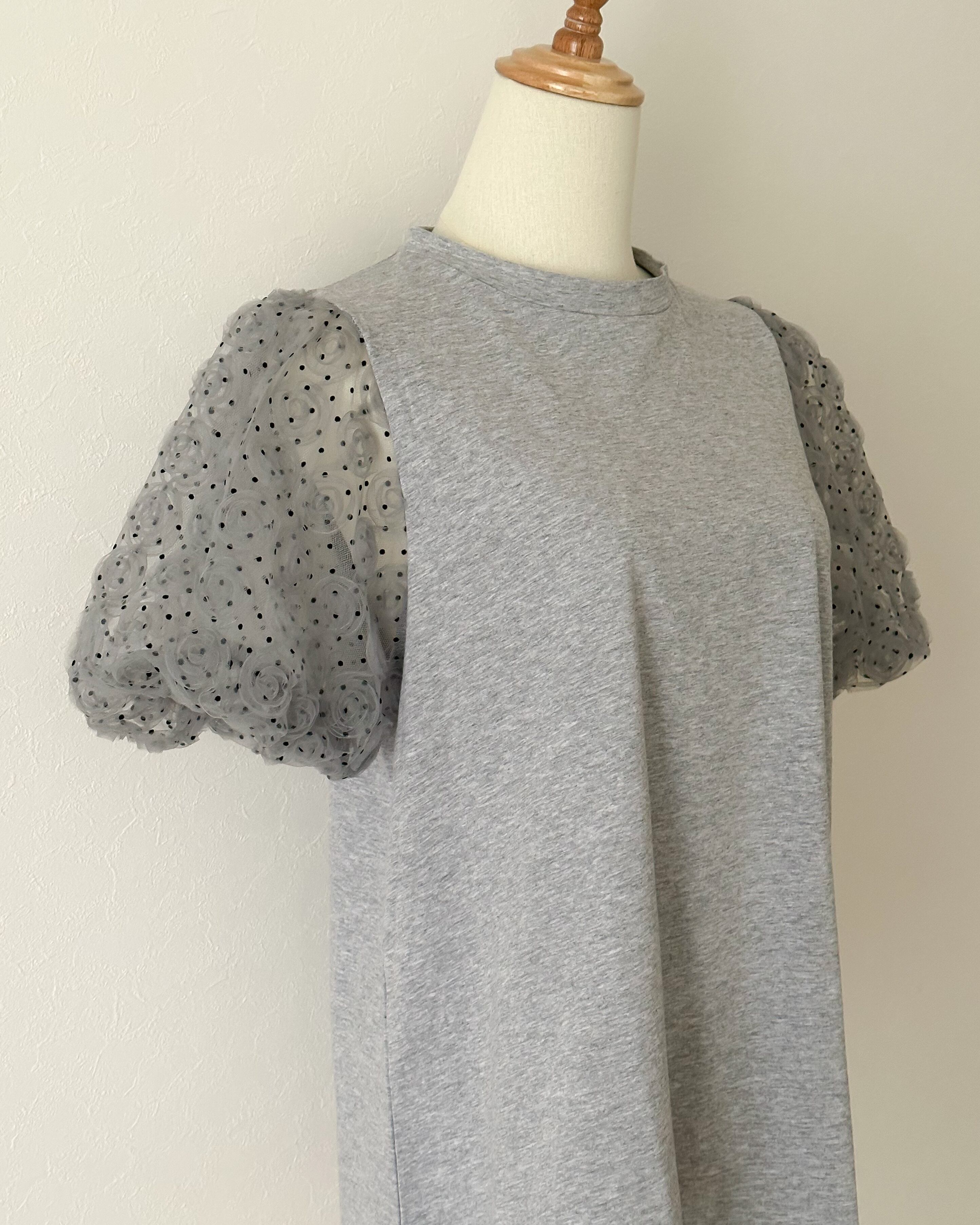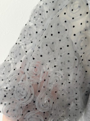 ローズモチーフ×ドットの透け感レースで仕立てられ、
