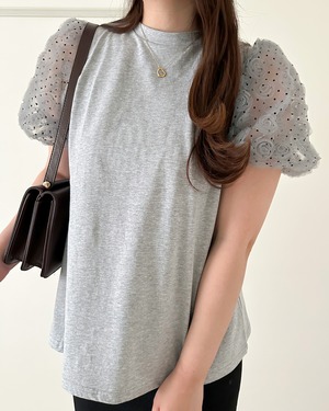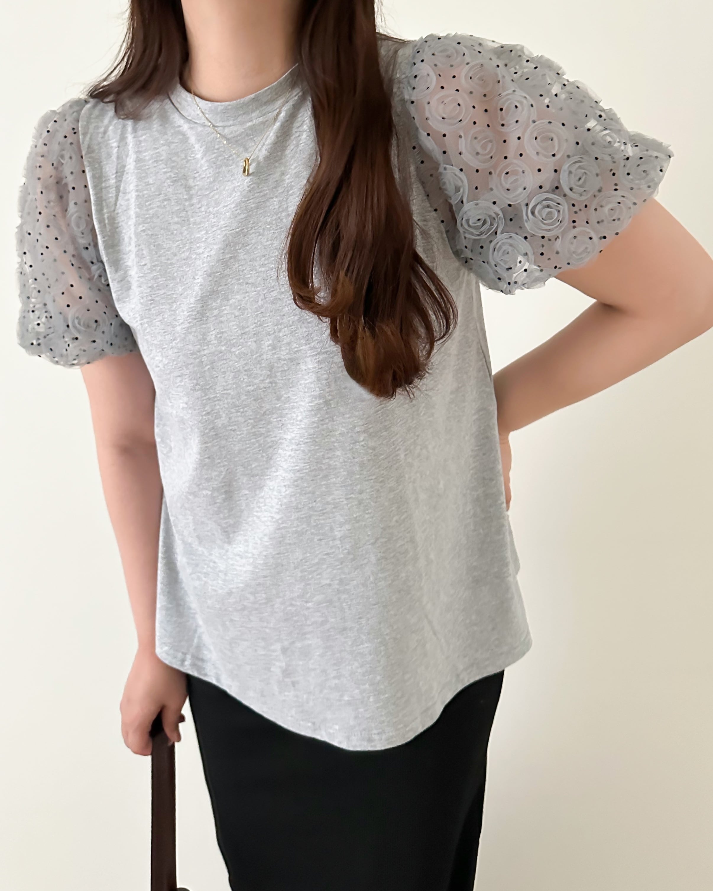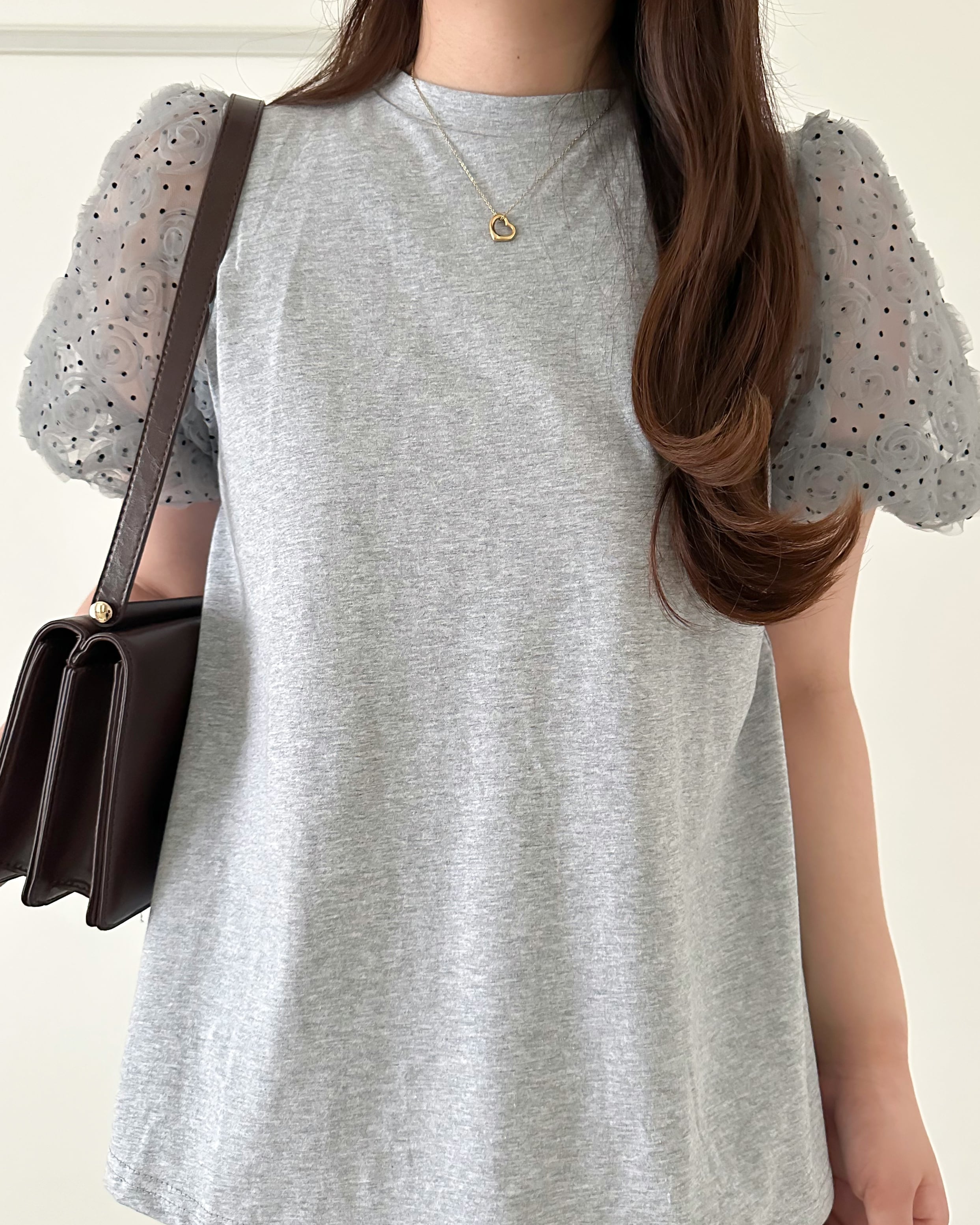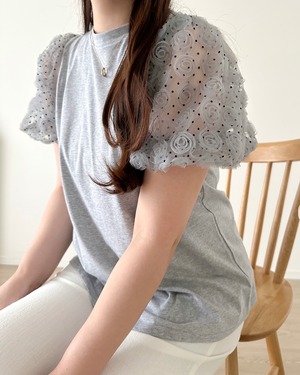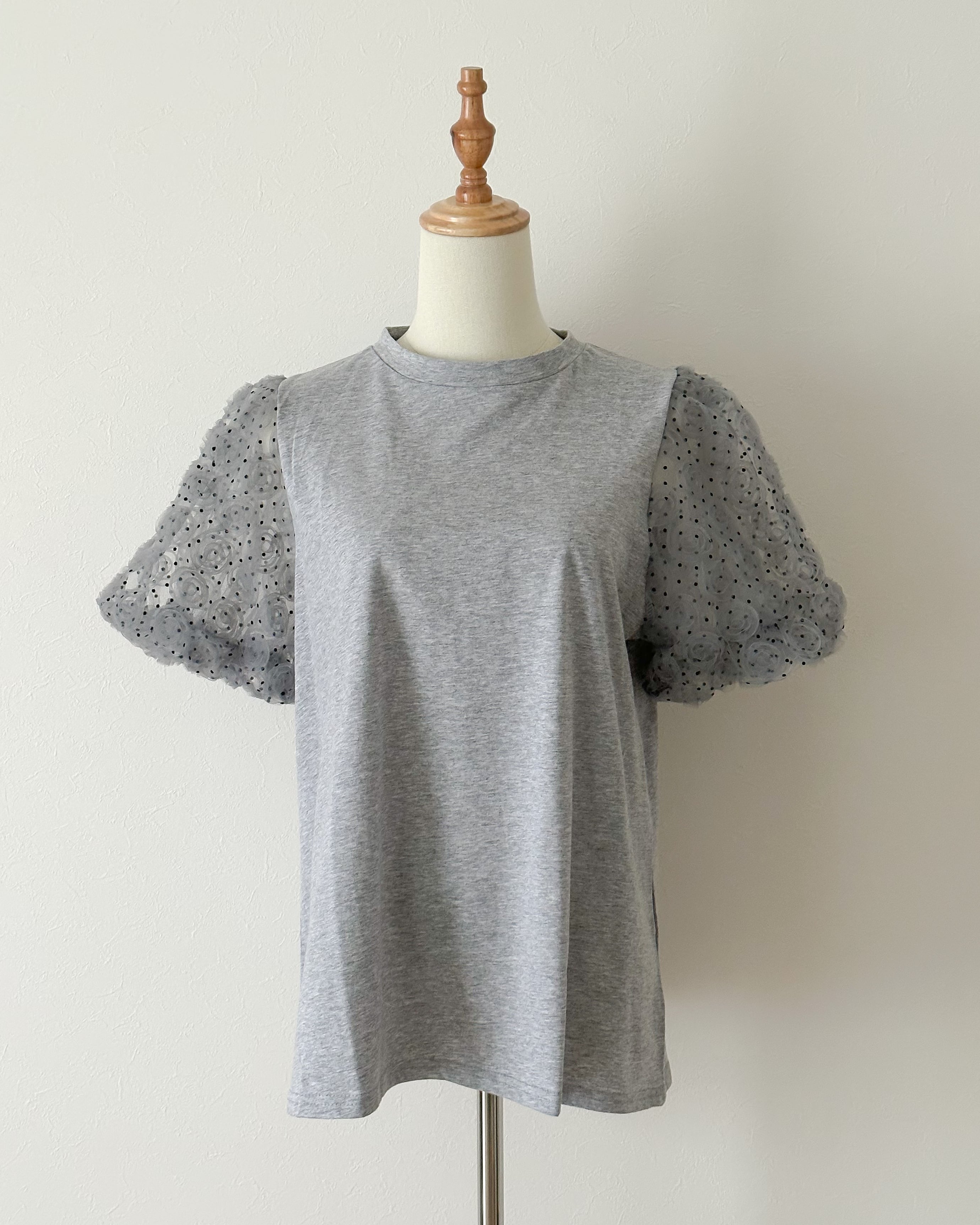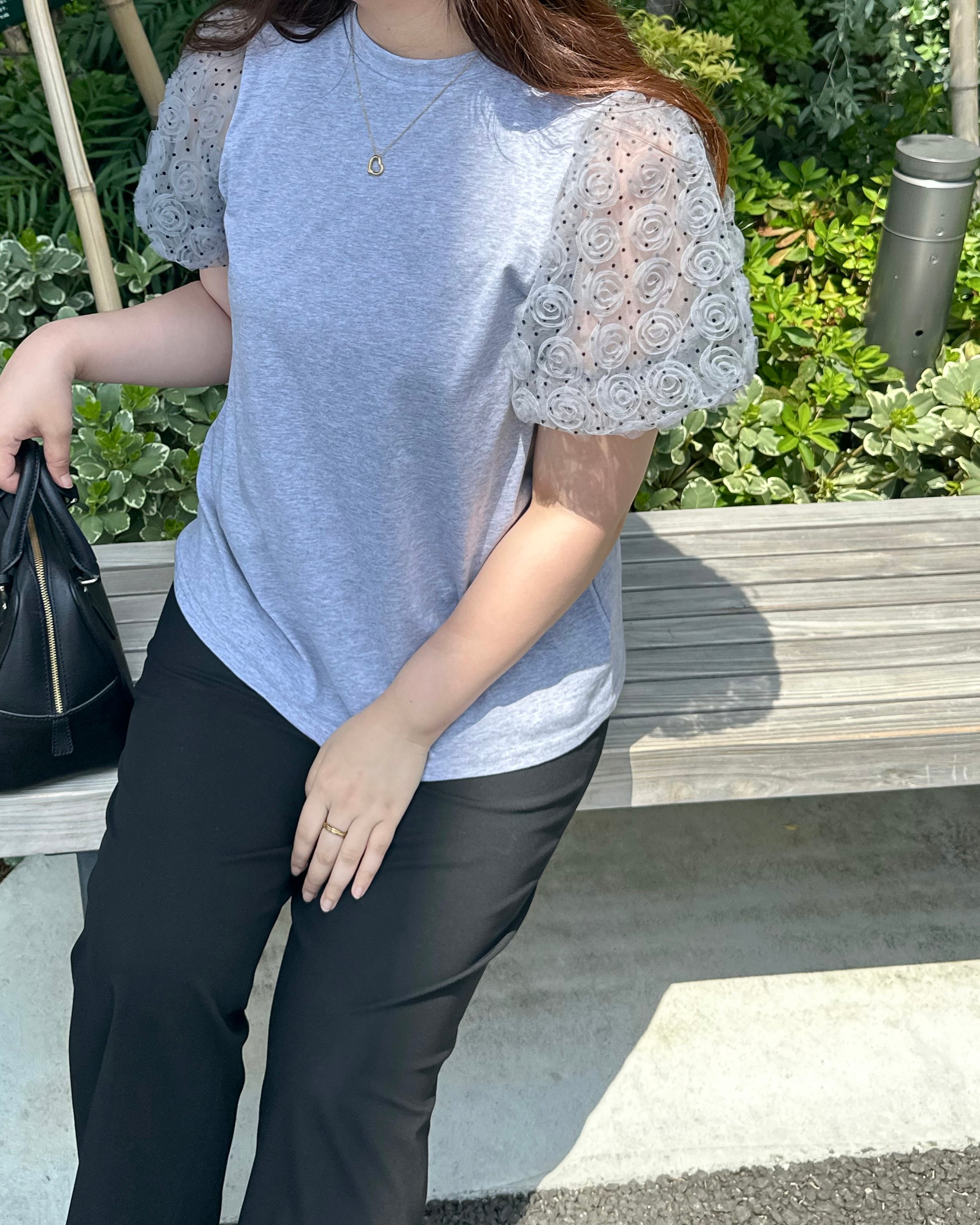 ローズモチーフ×ドットの透け感レースで仕立てられ、
