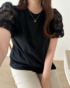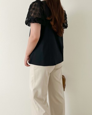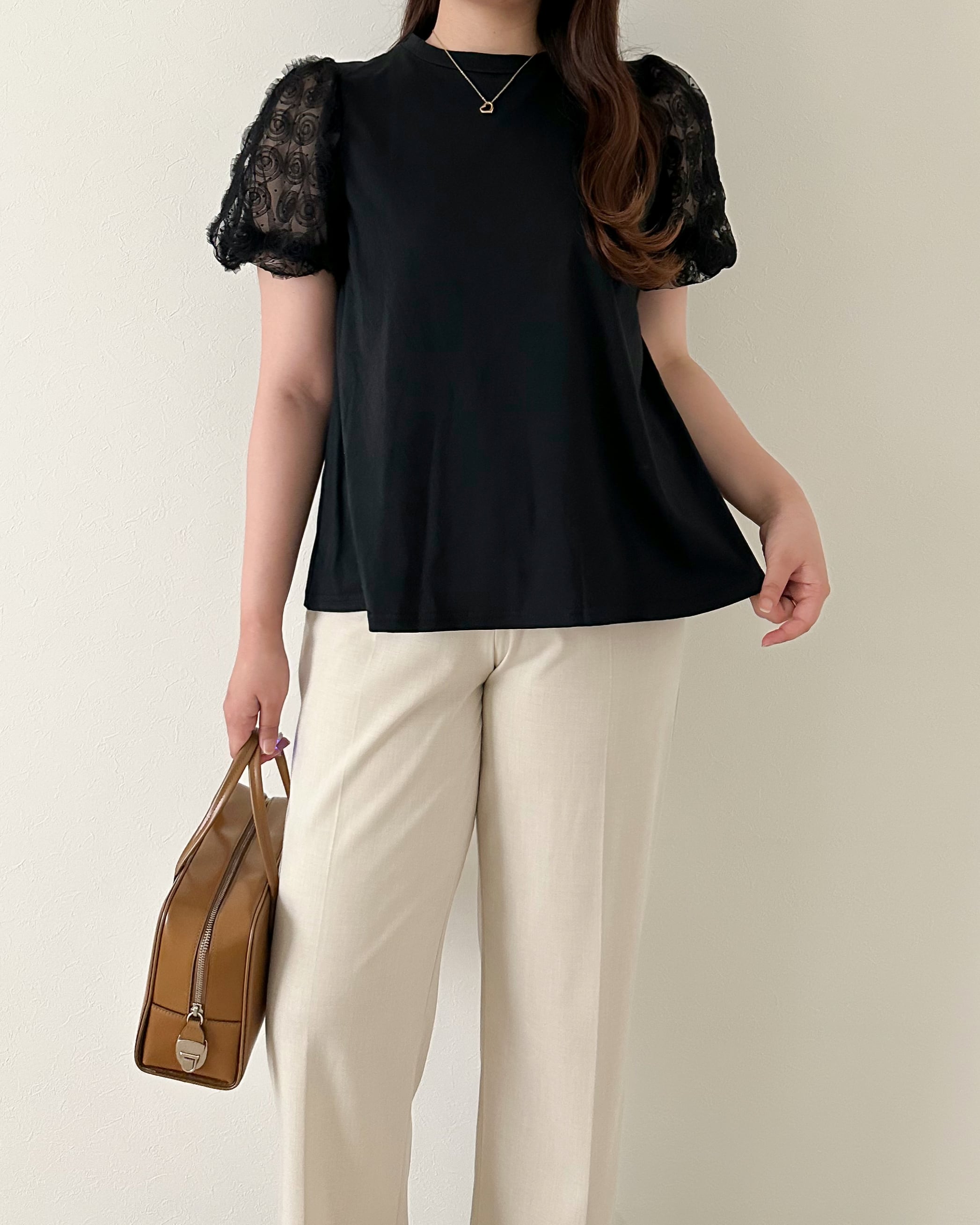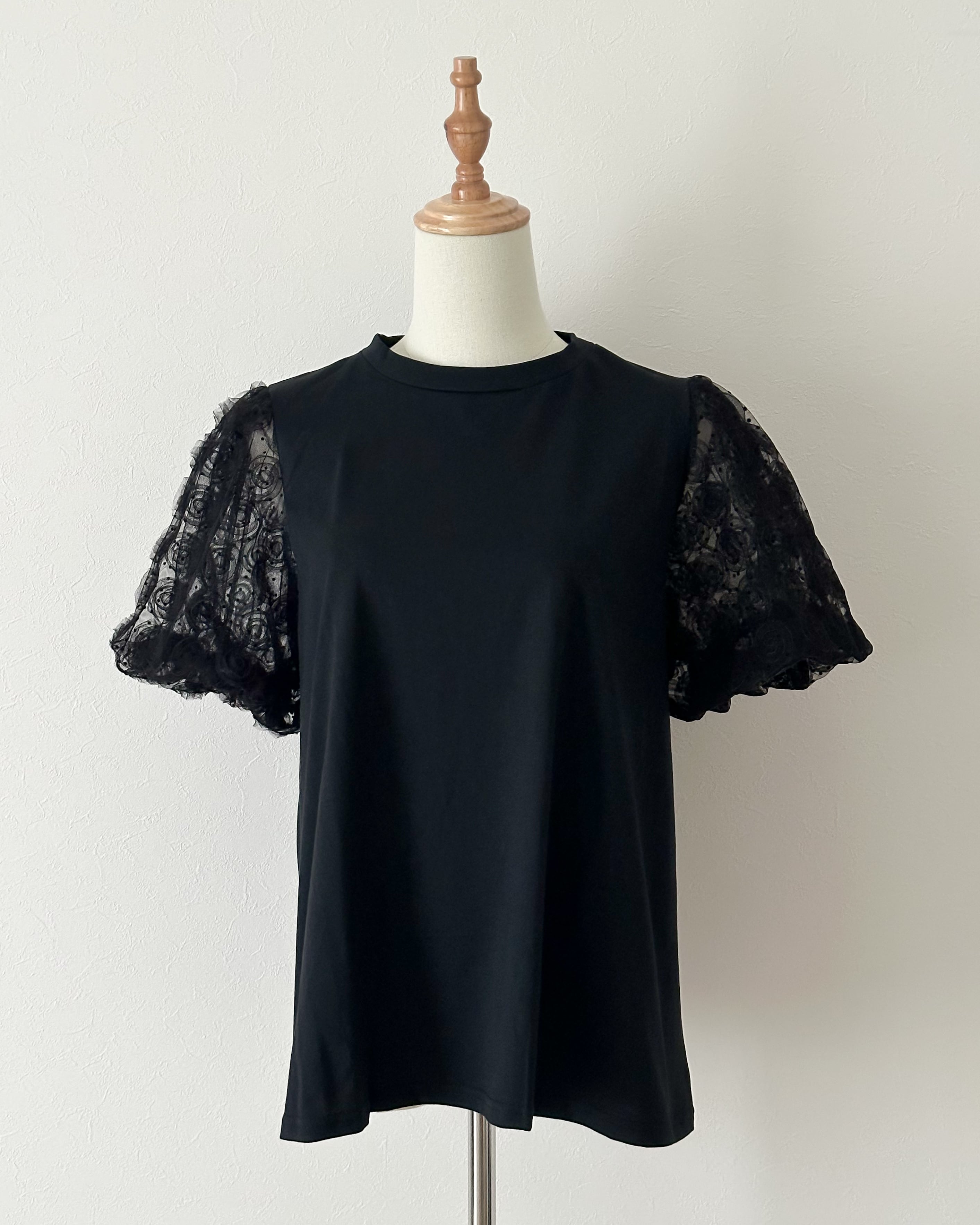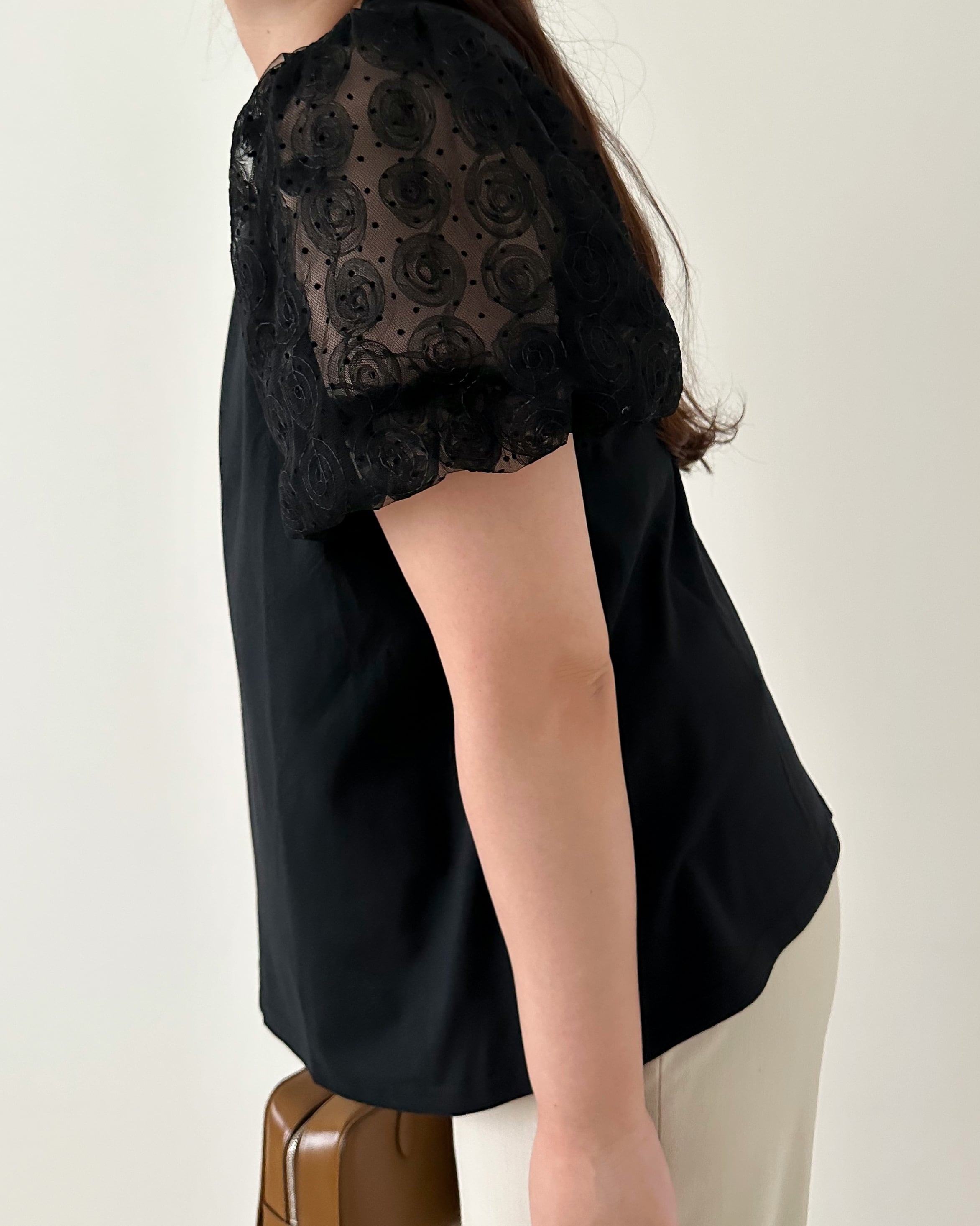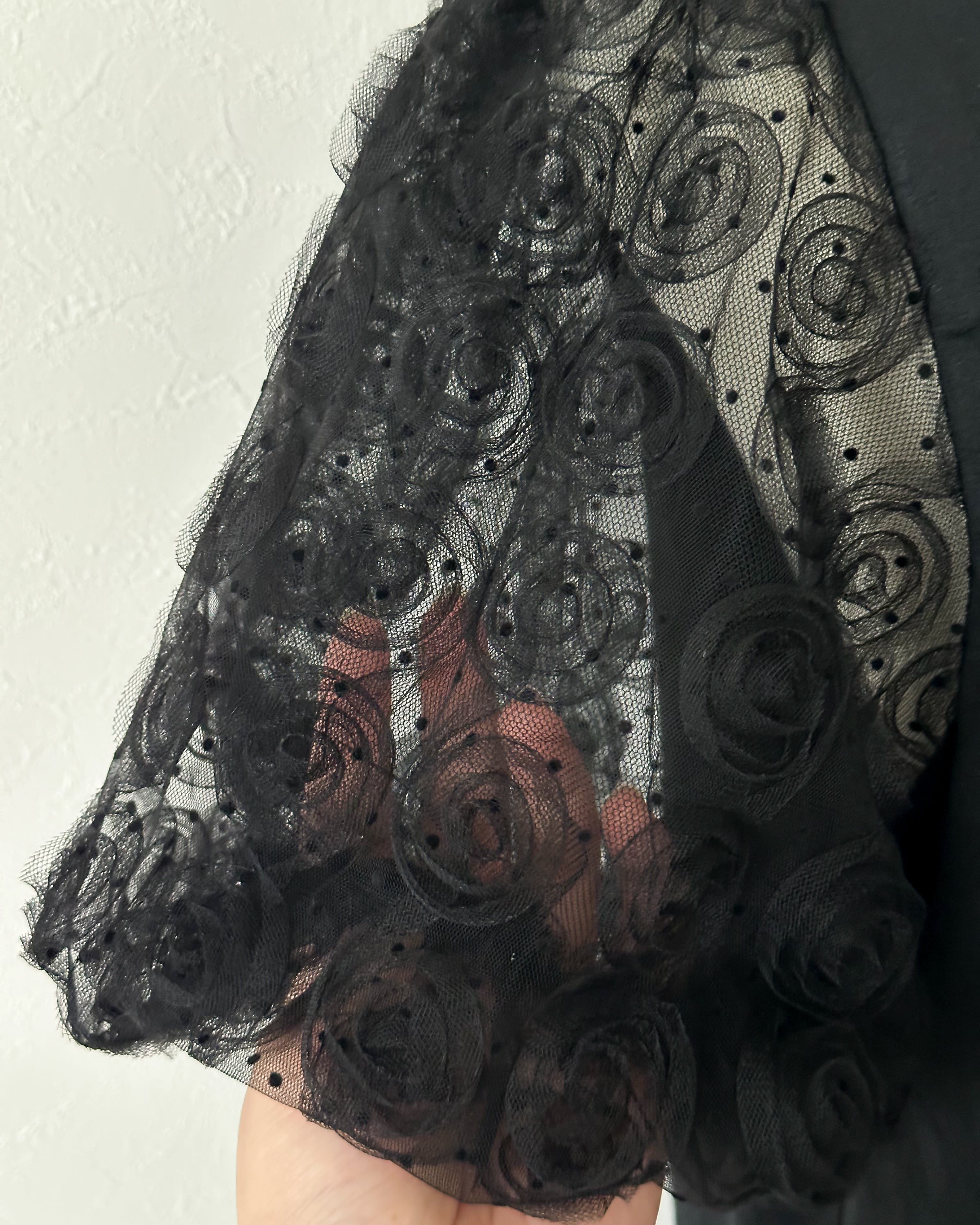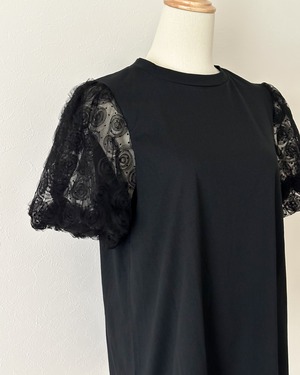 ローズモチーフ×ドットの透け感レースで仕立てられ、