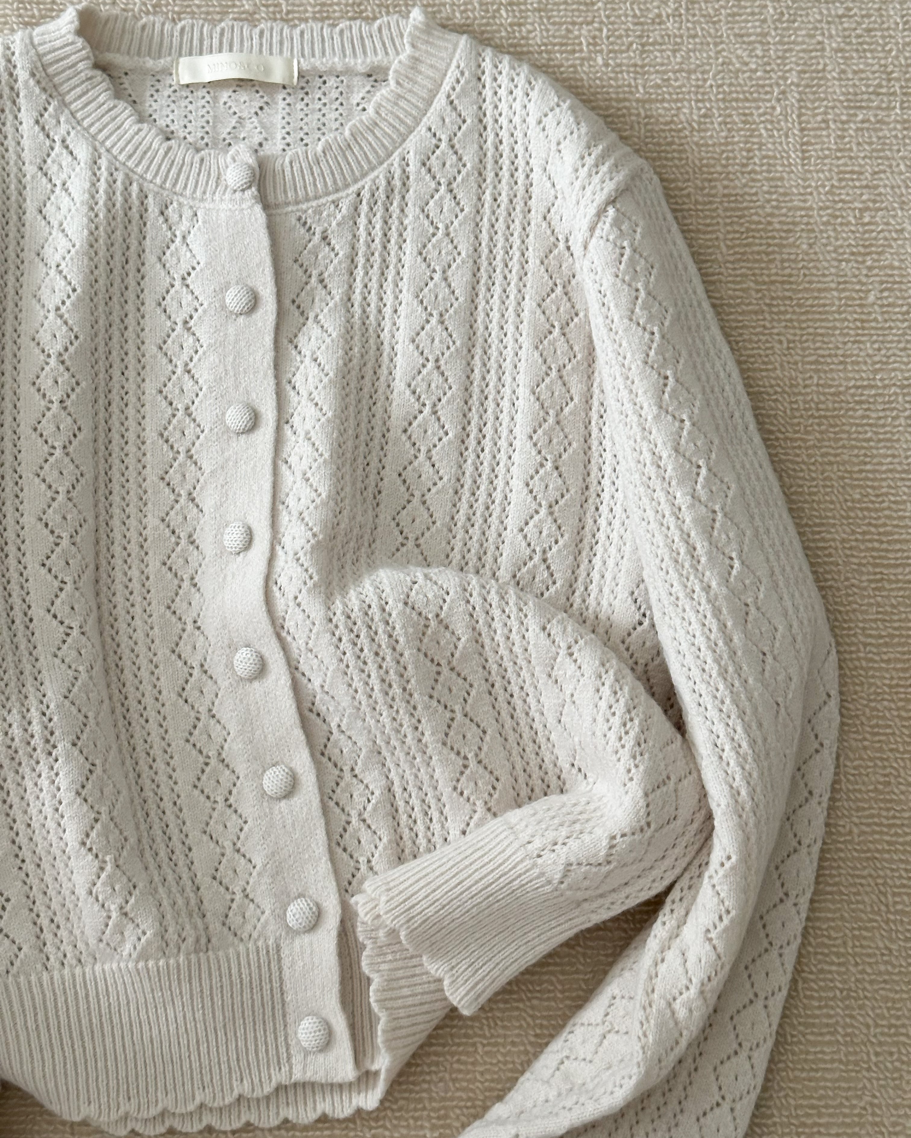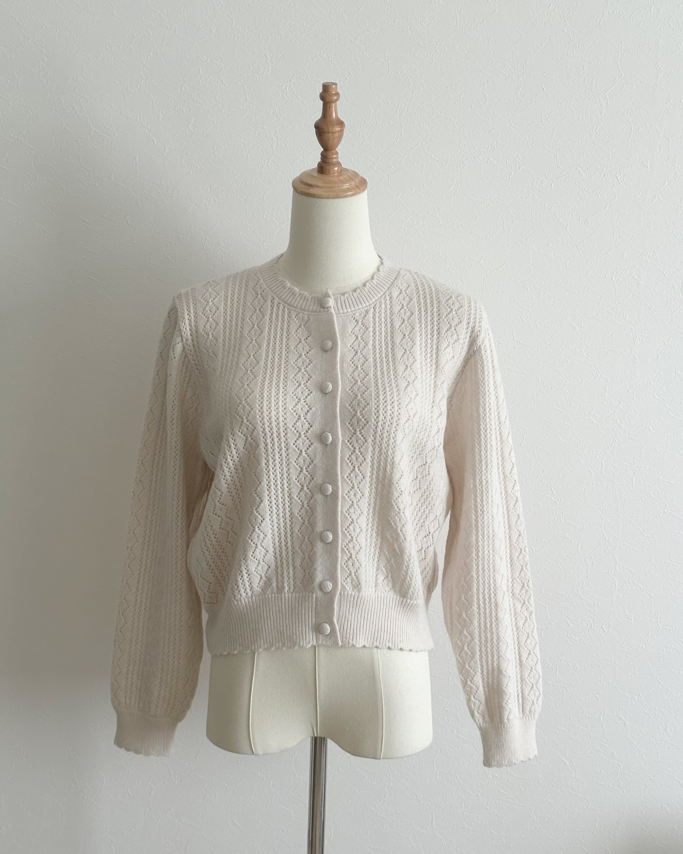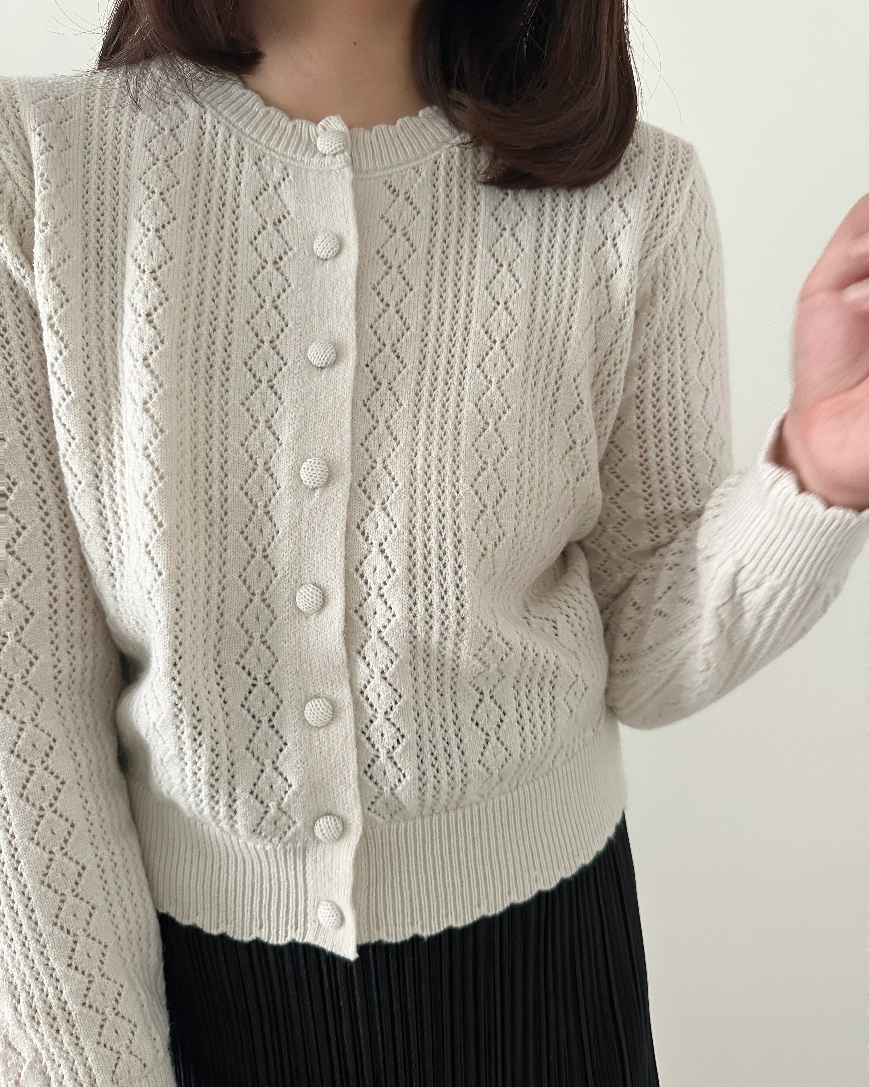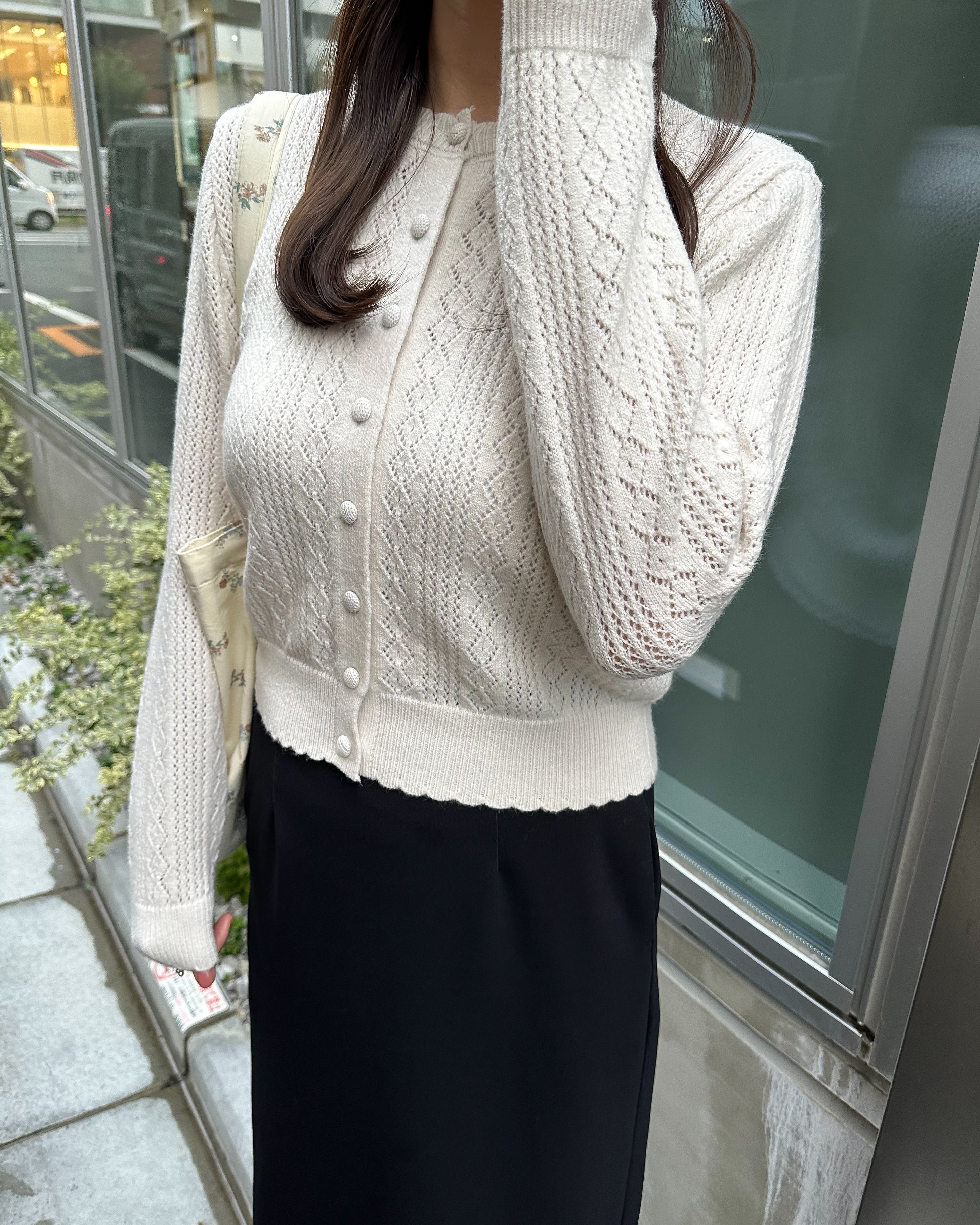 くるみボタンとスカラップの裾が大人可愛いデザインです。