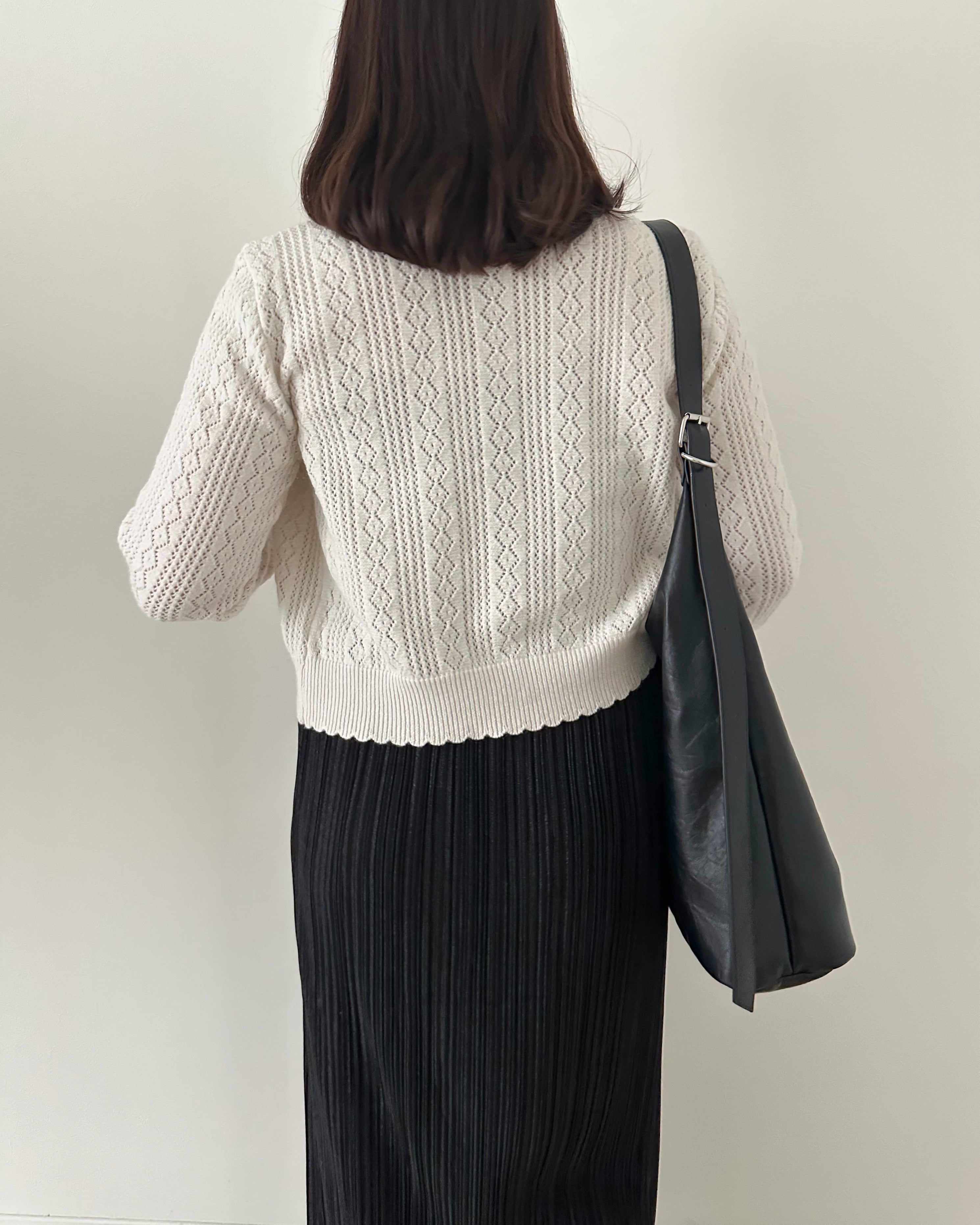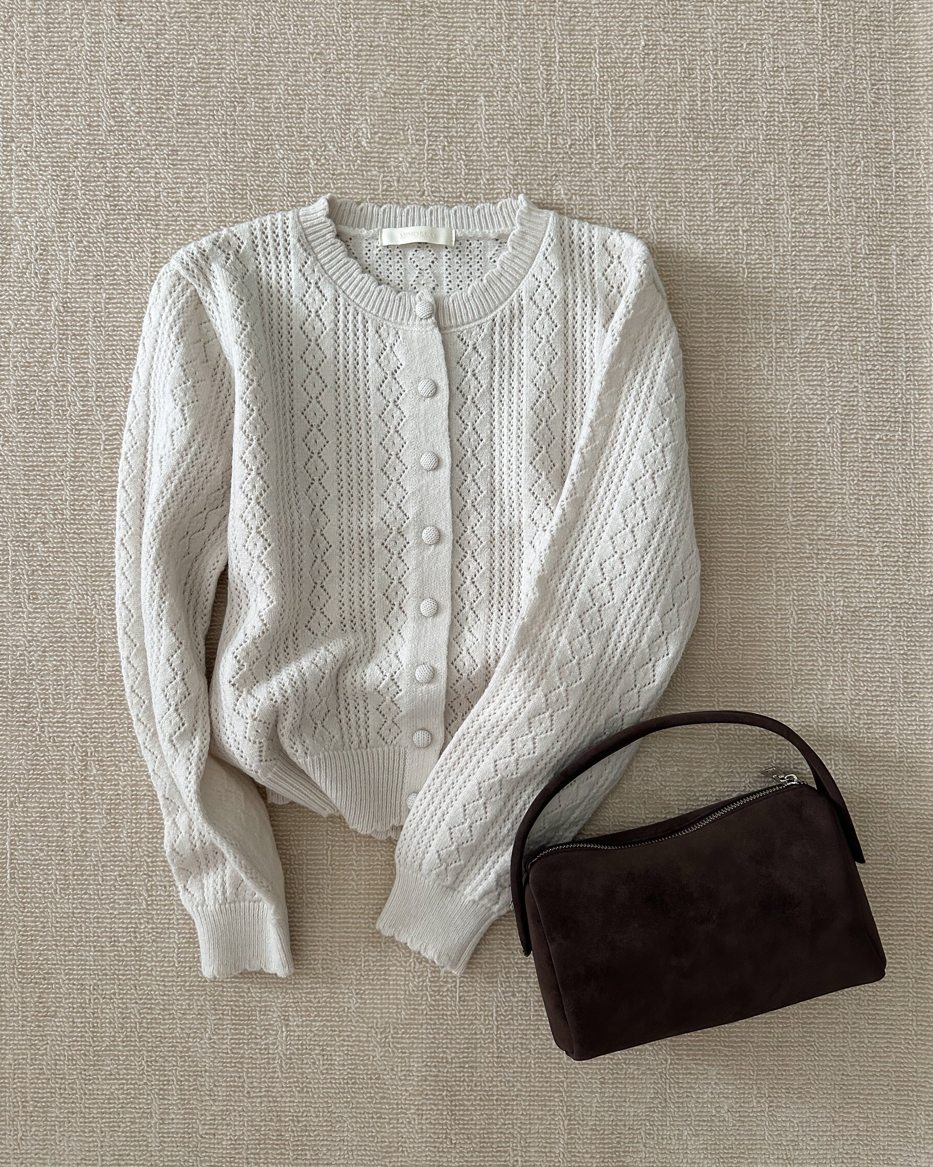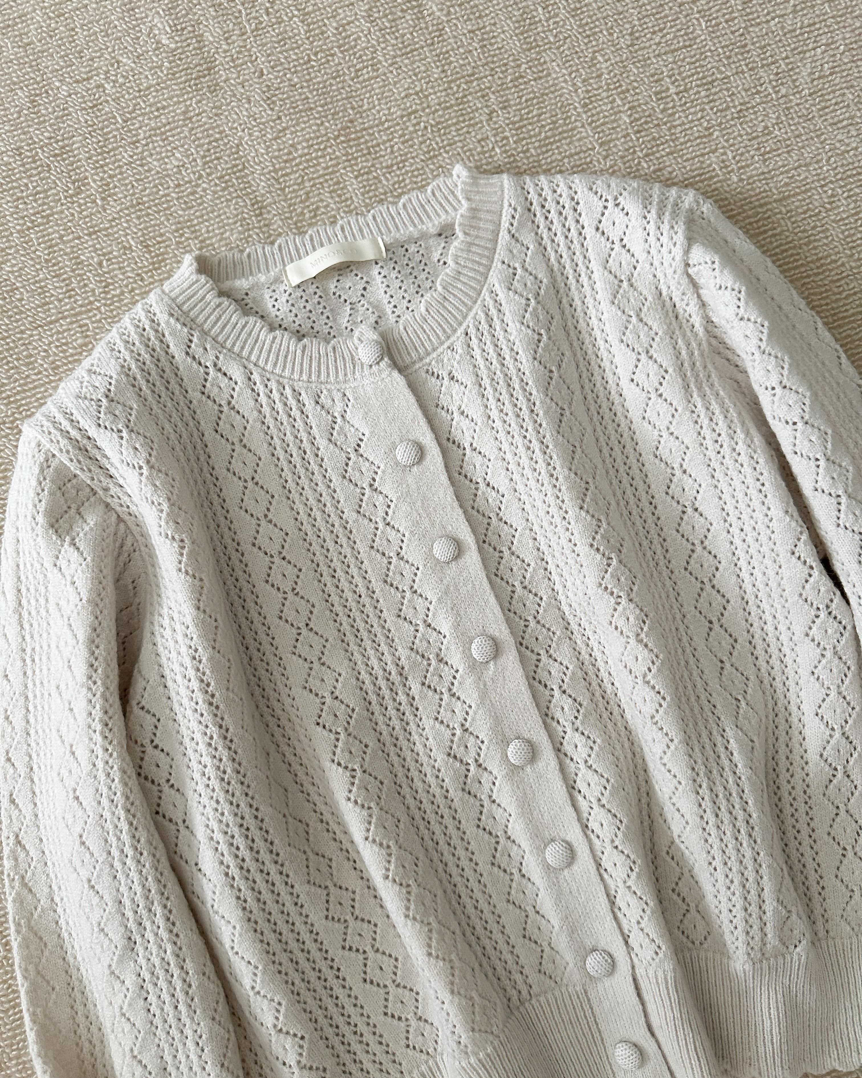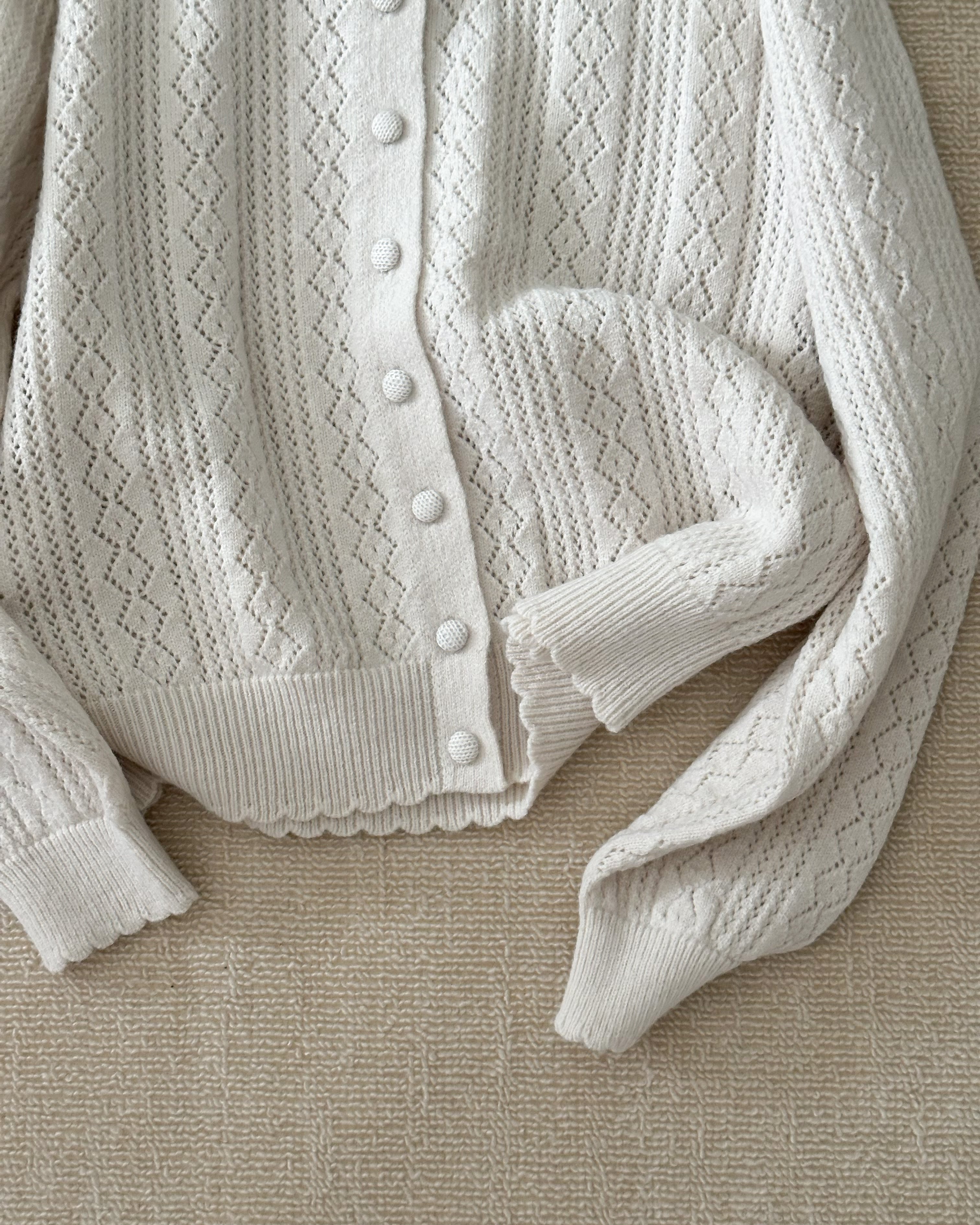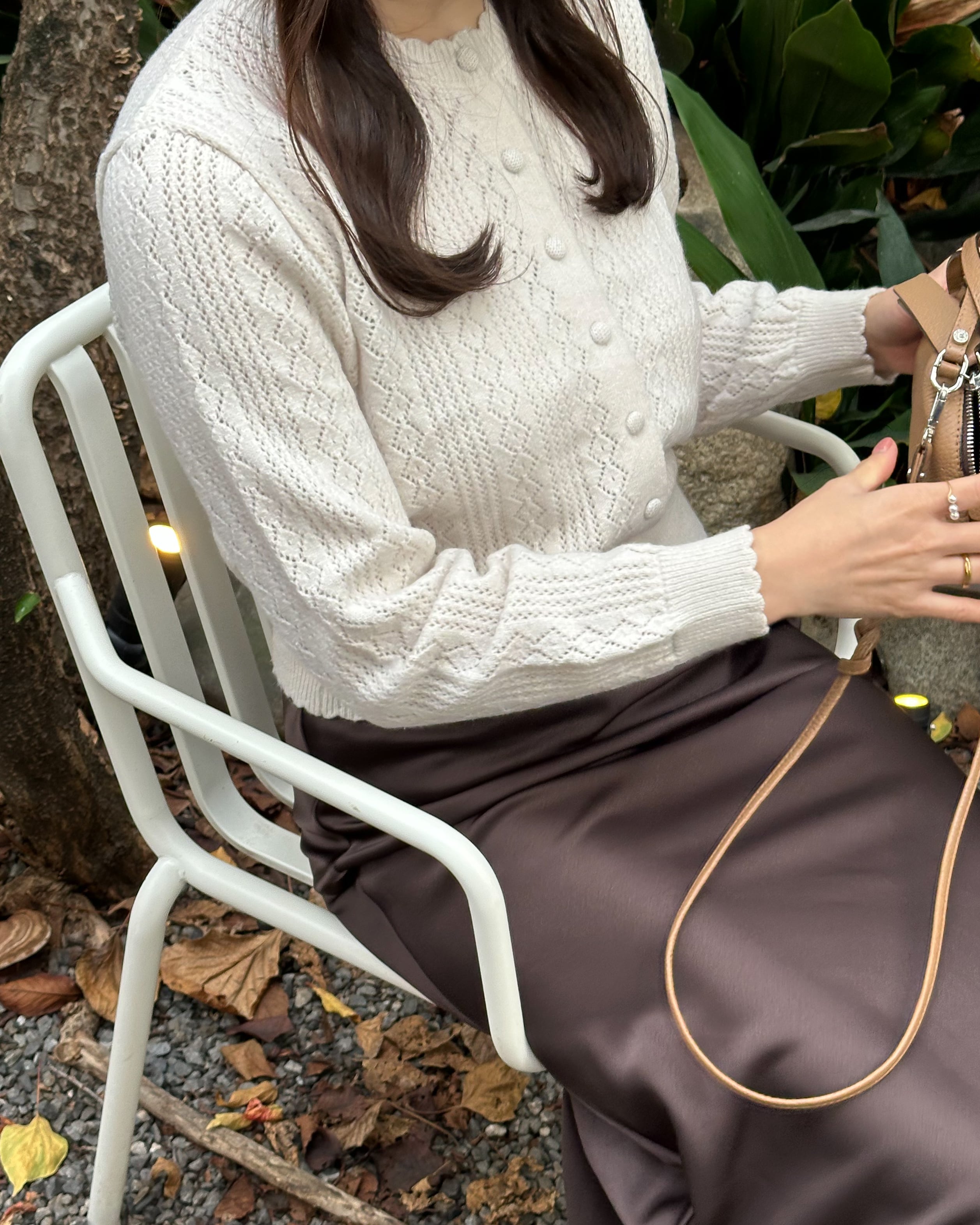 くるみボタンとスカラップの裾が大人可愛いデザインです。