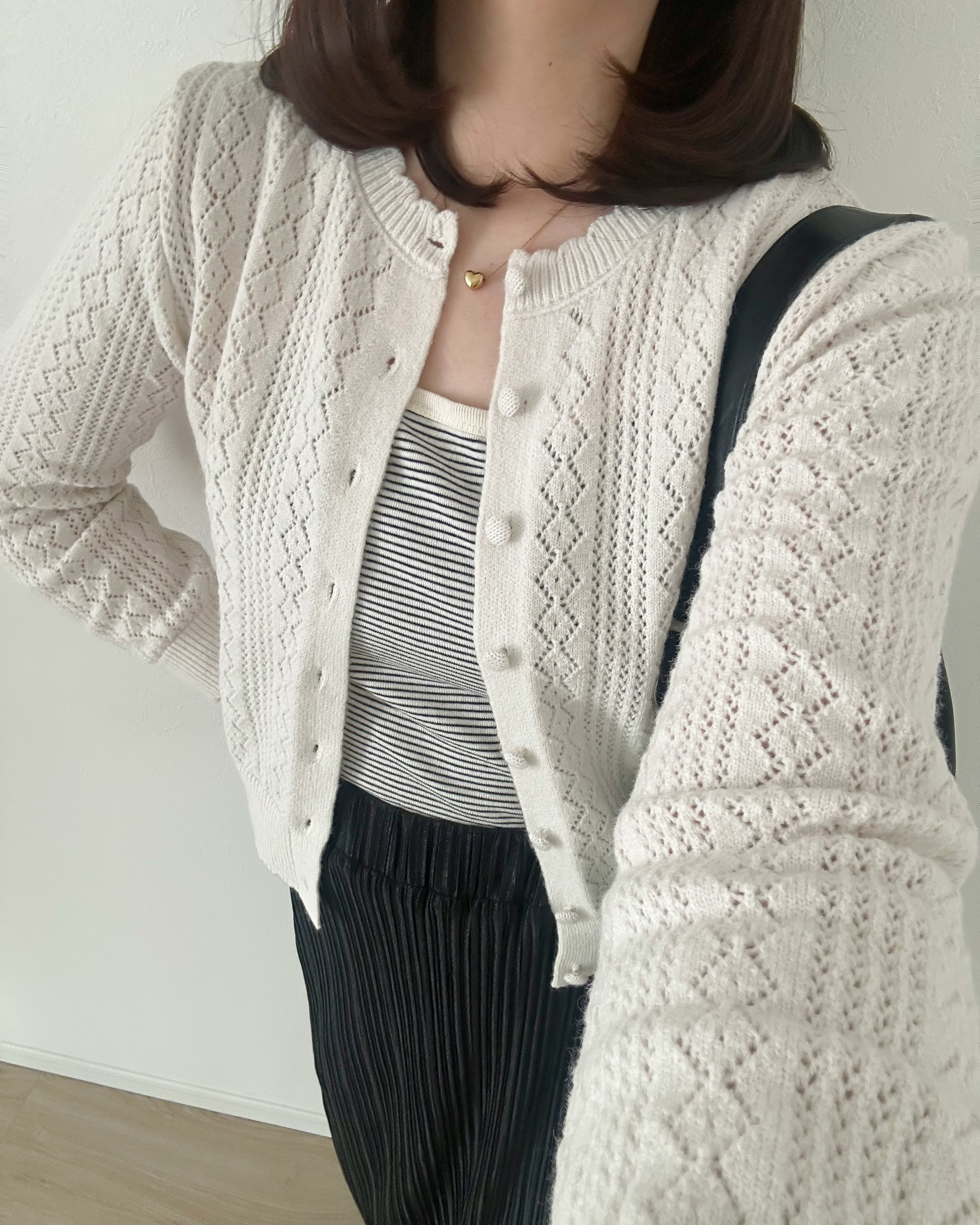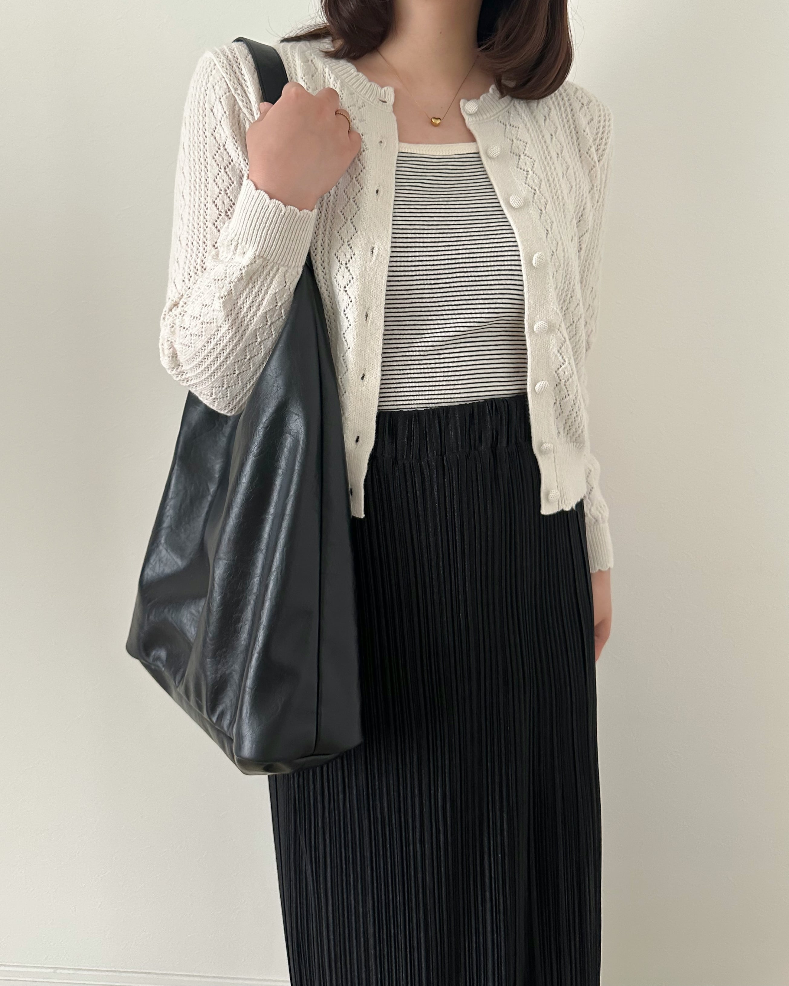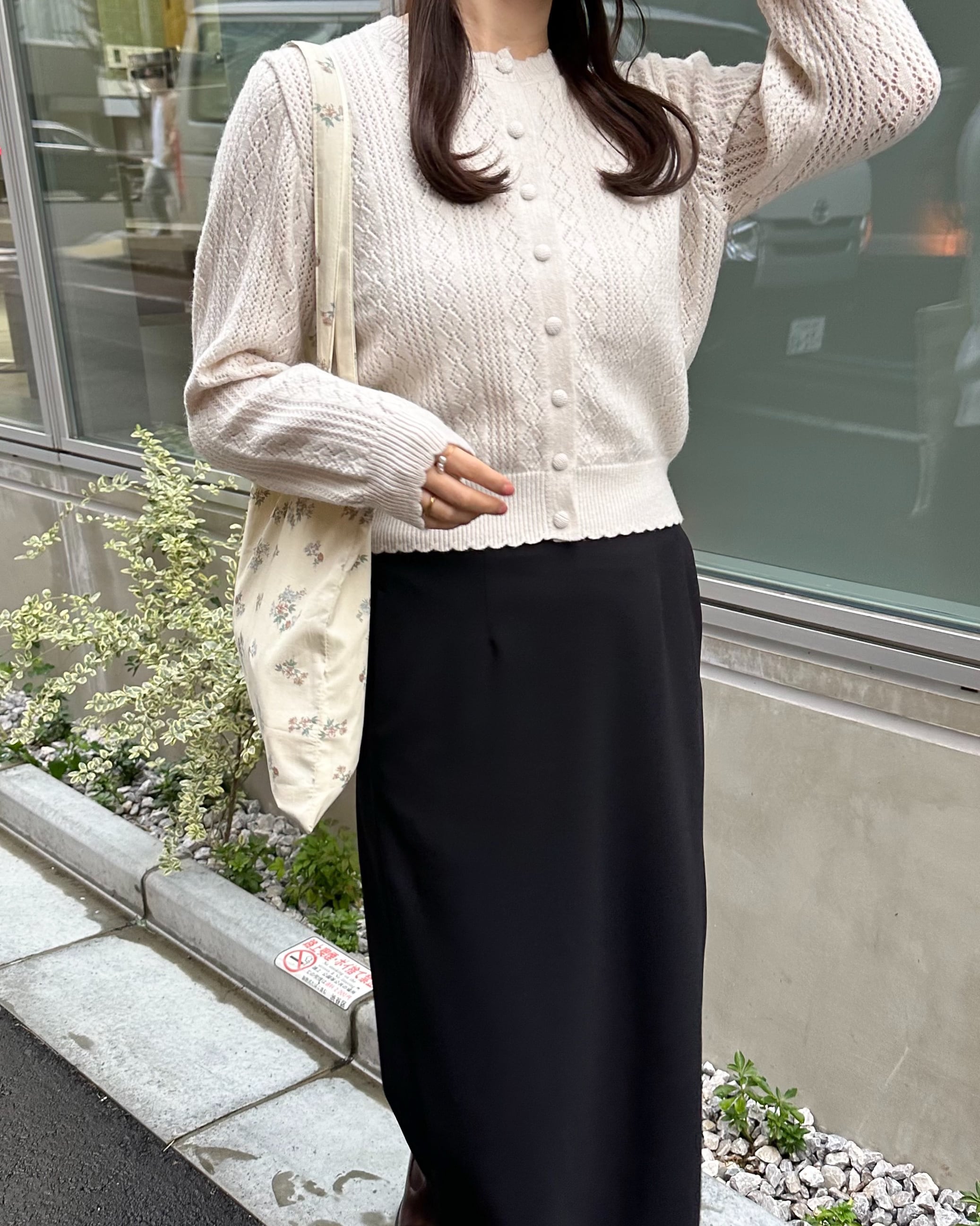きちんと感があるので、スカートにもパンツにも相性抜群。羽織としてもおすすめです。