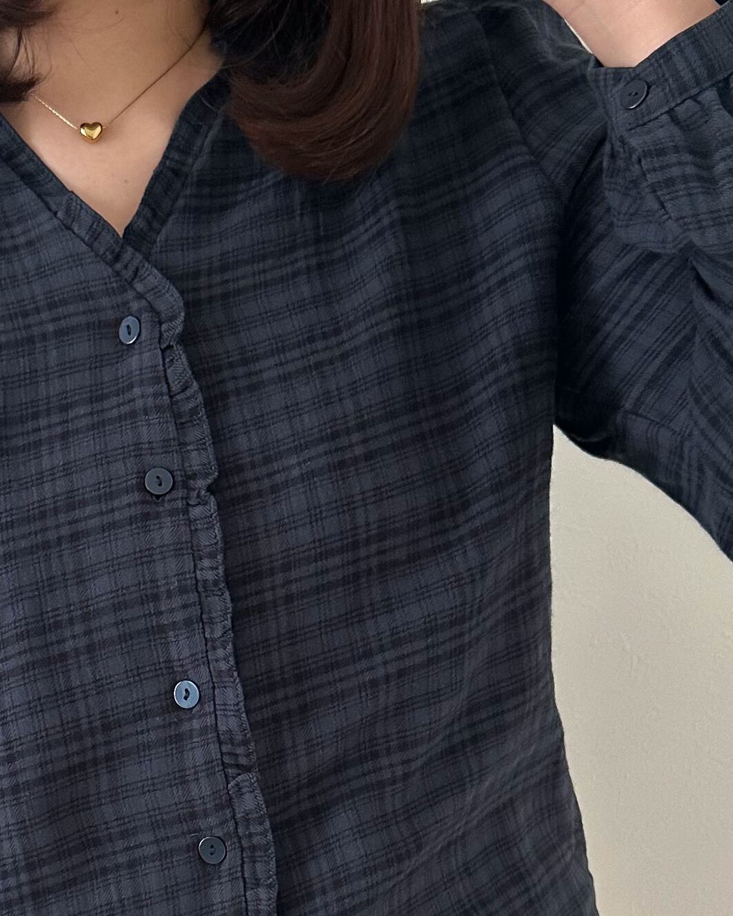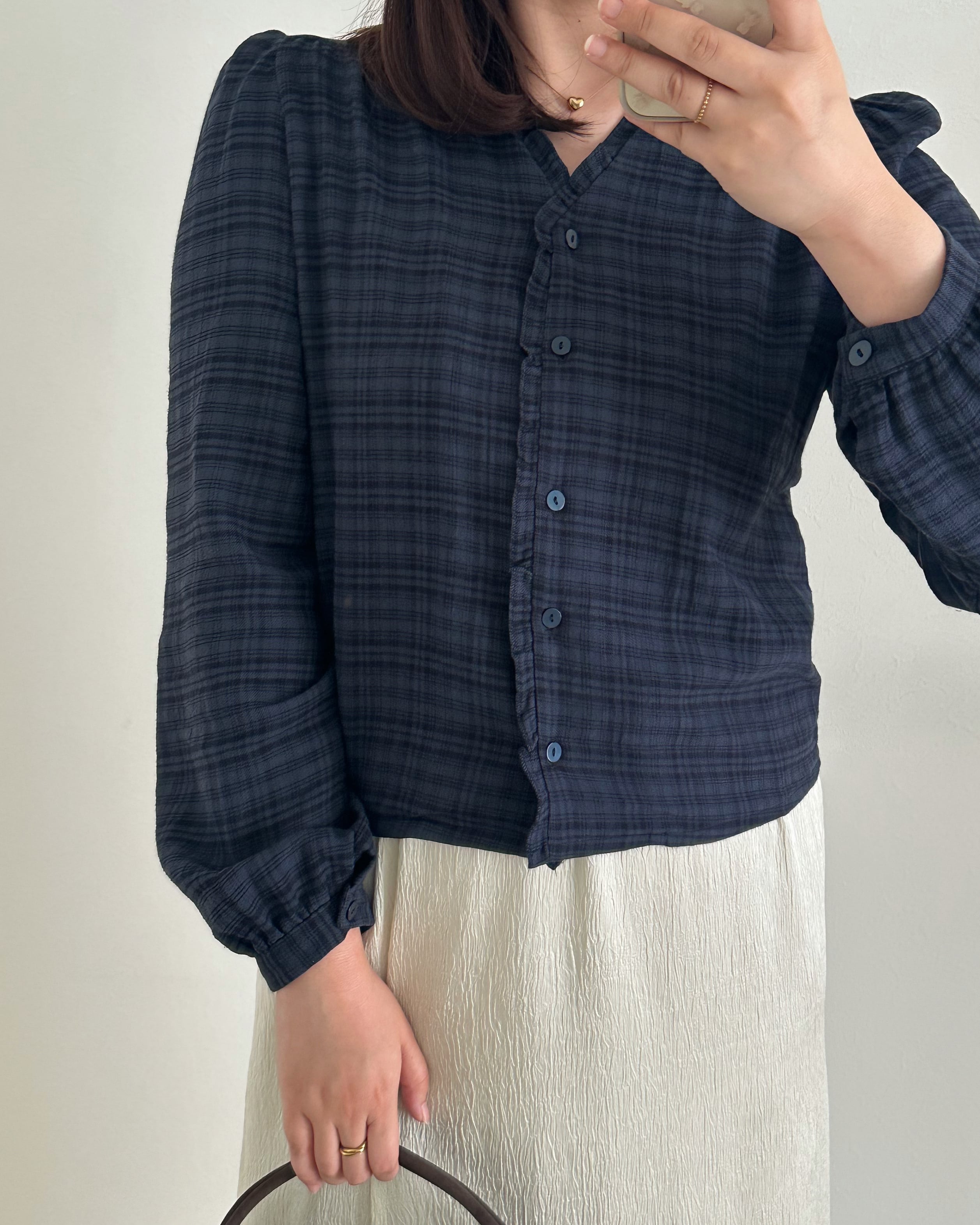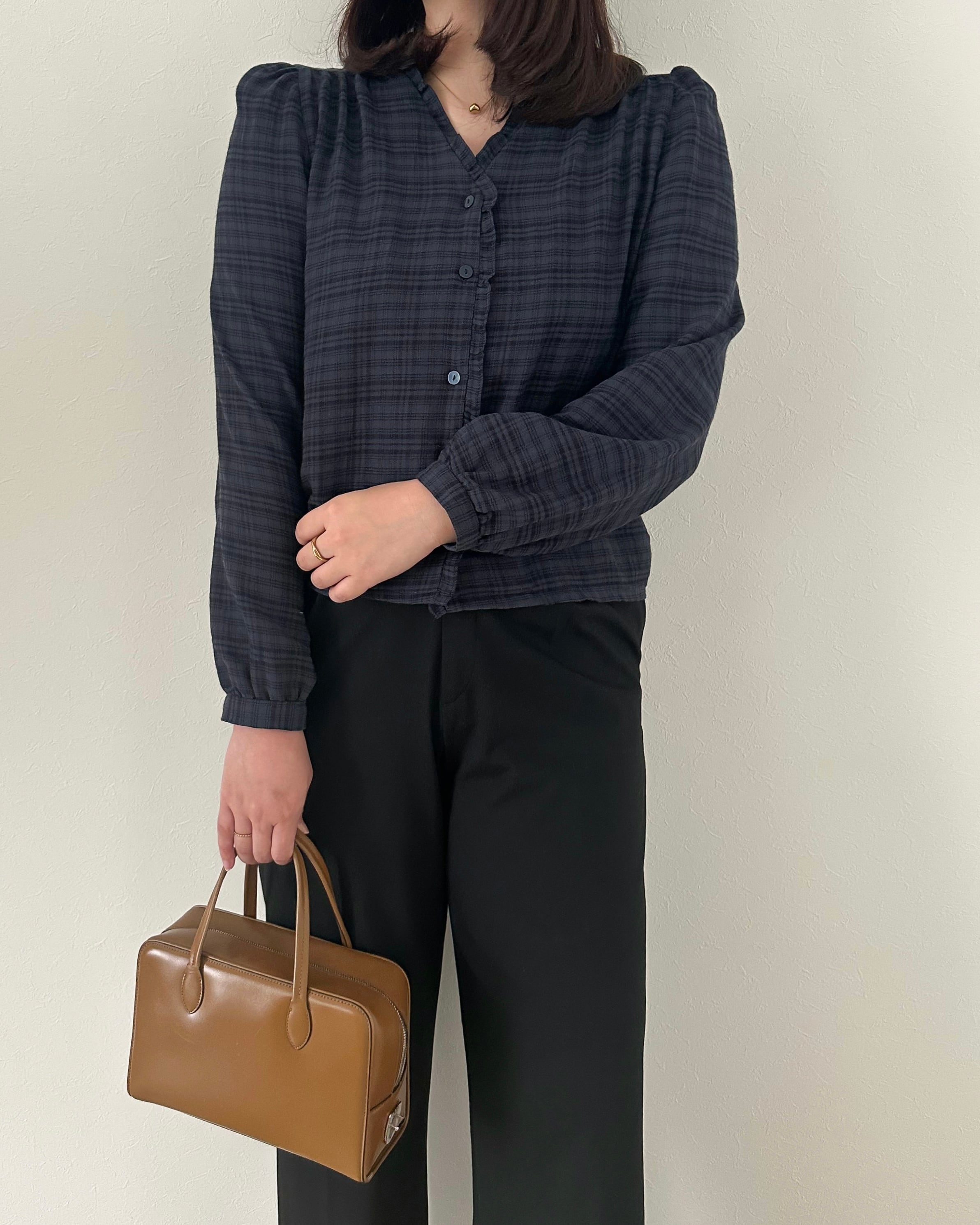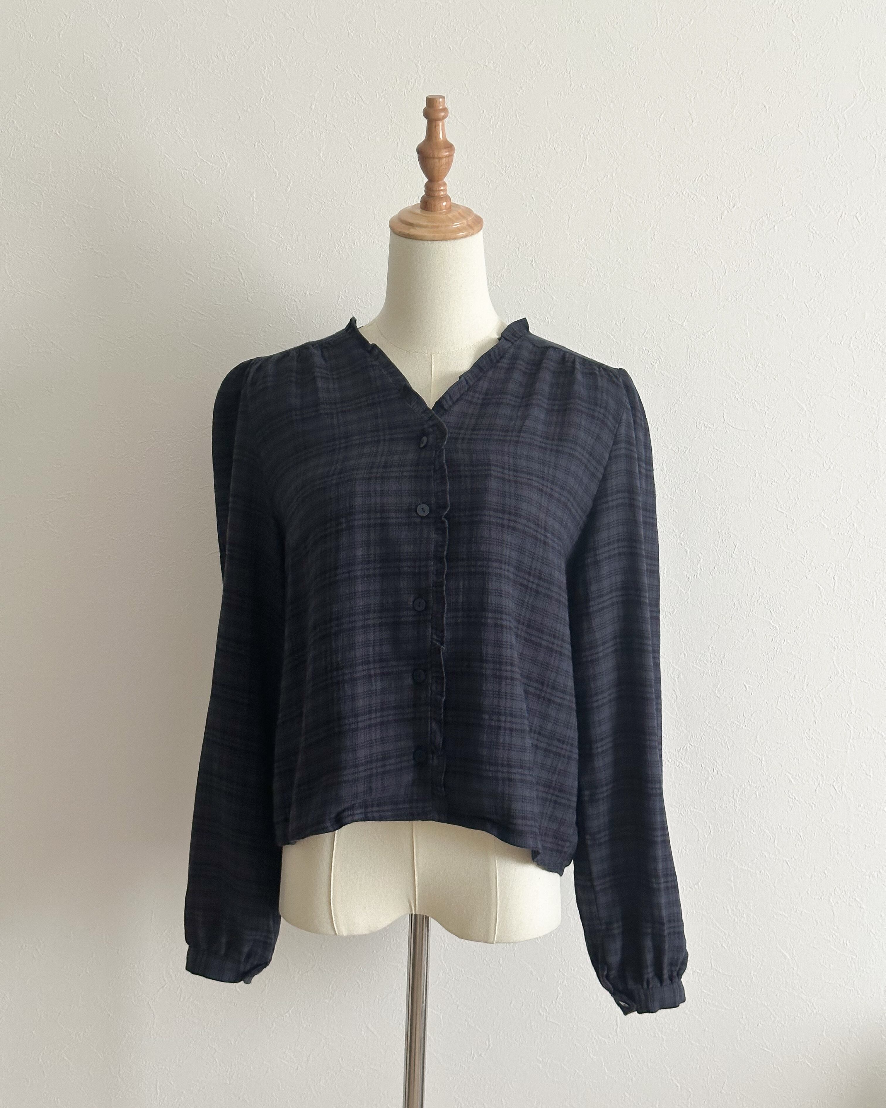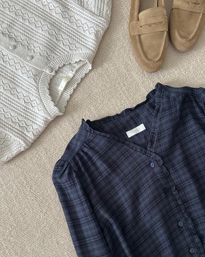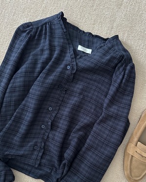 チェックフリルブラウス