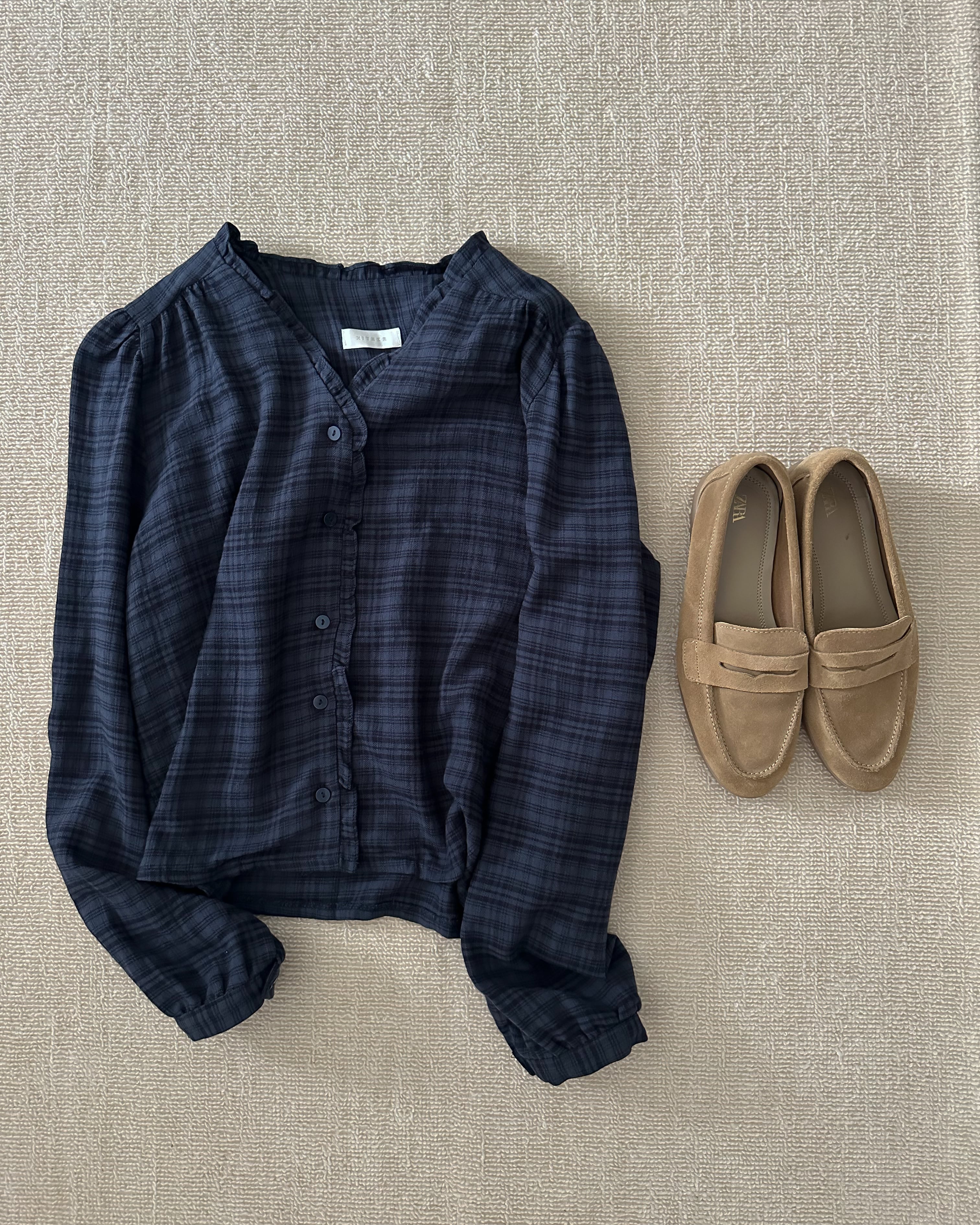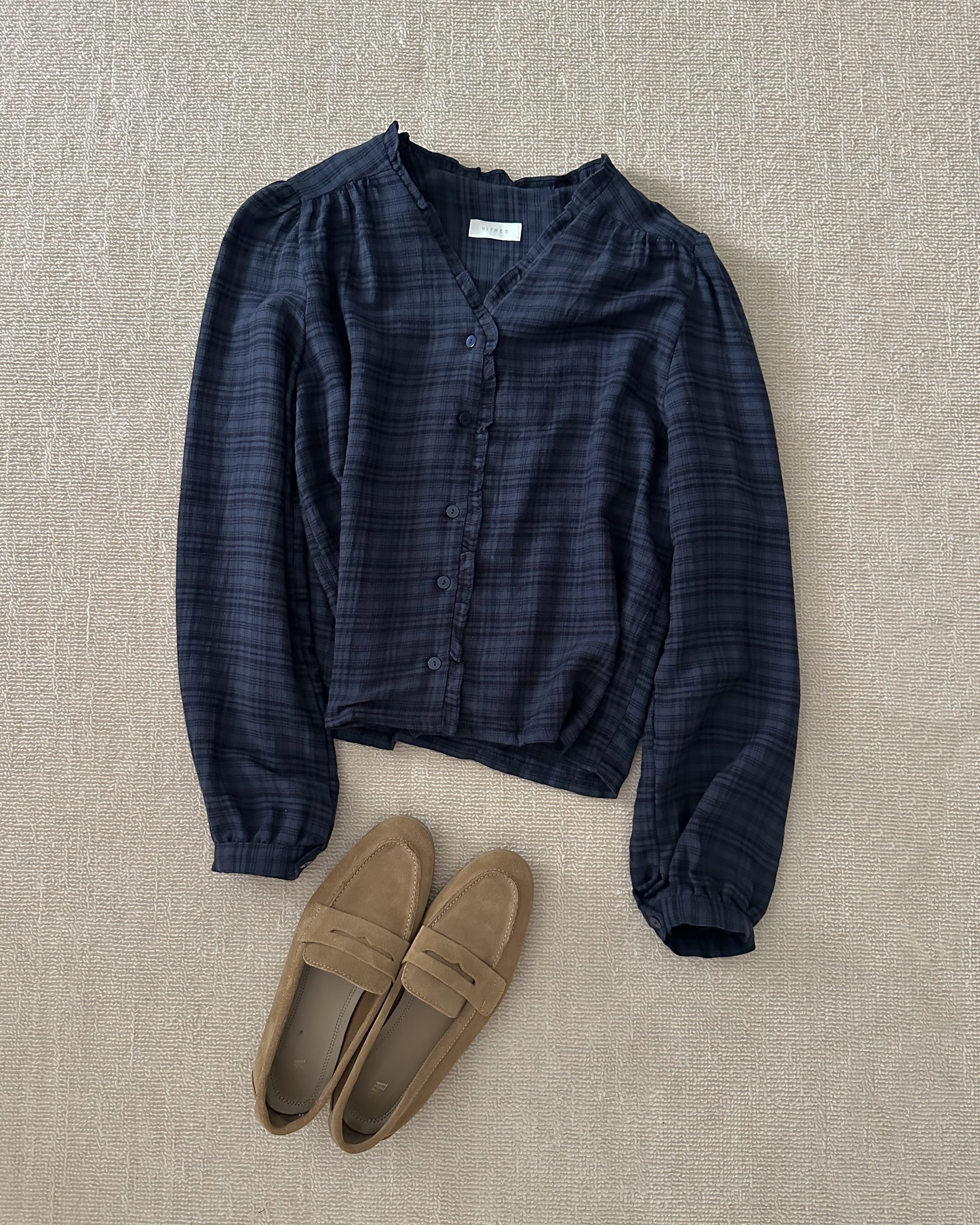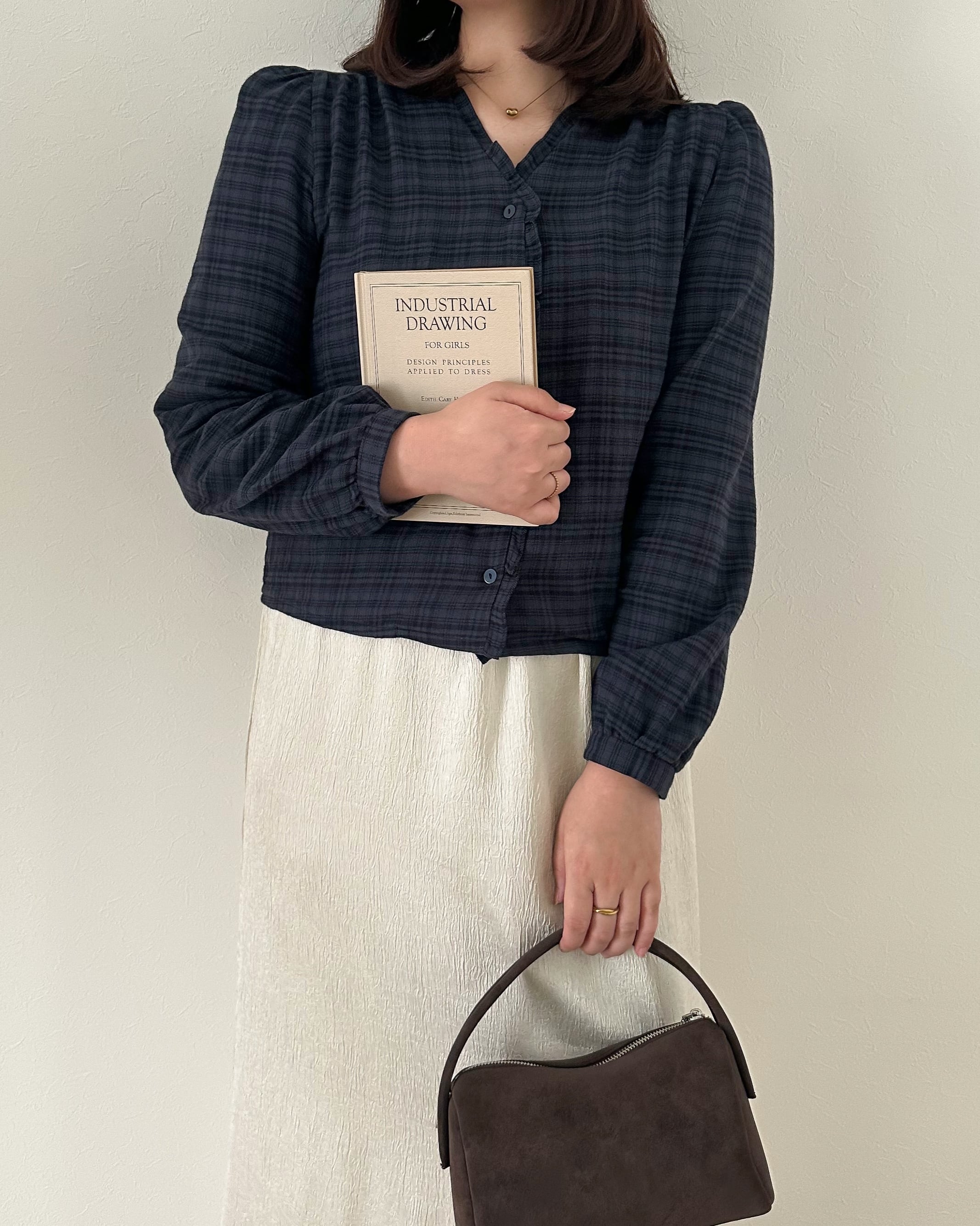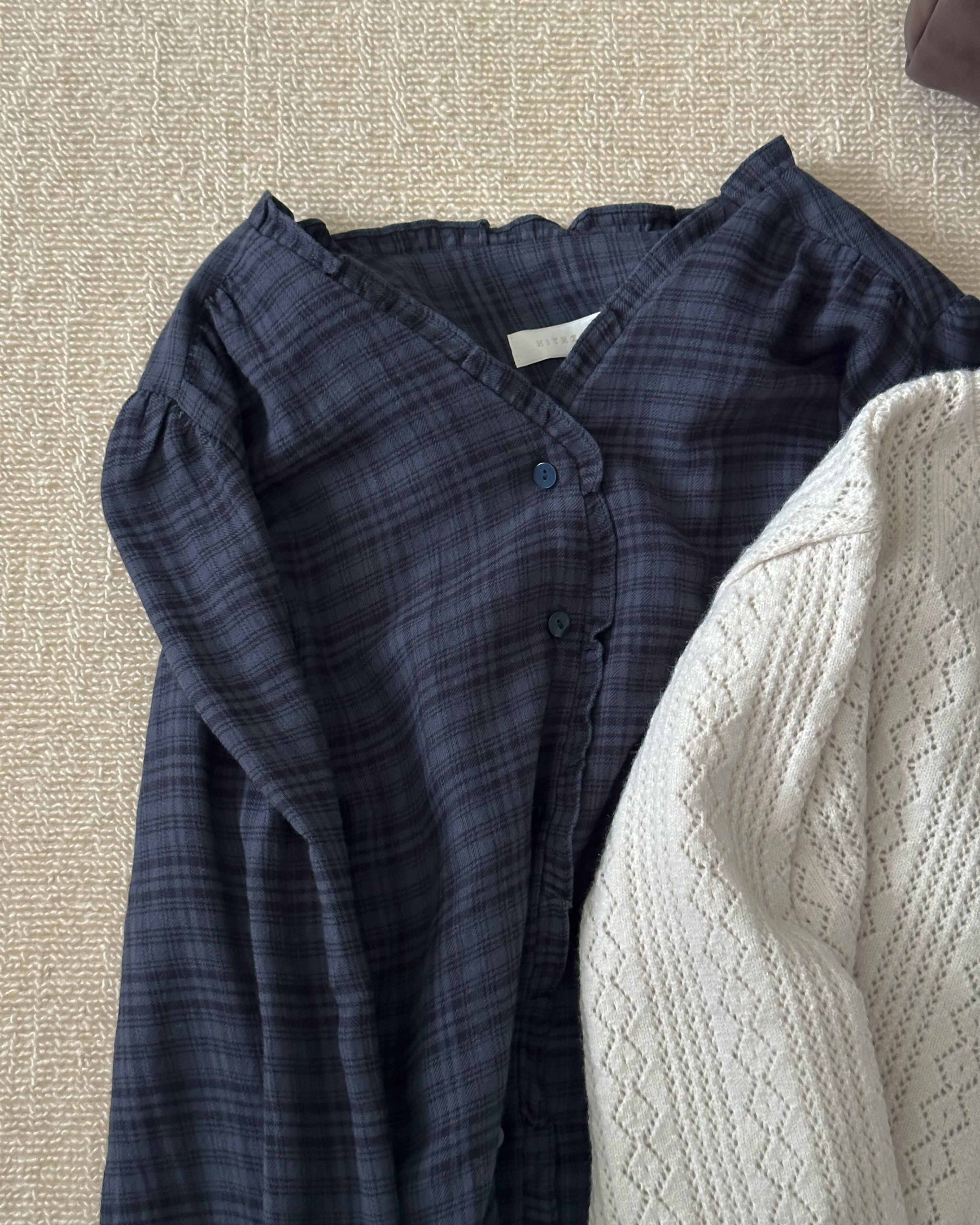 チェックフリルブラウス